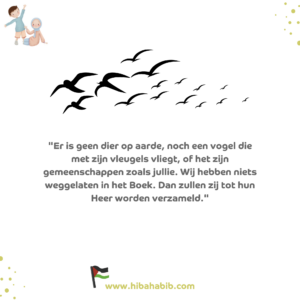 Dit vers herinnert ons eraan dat dieren hun eigen plaats en waarde hebben in de wereld. Het respect dat we voor hen tonen, weerspiegelt onze dankbaarheid voor de schepping van Allah ﷻ.